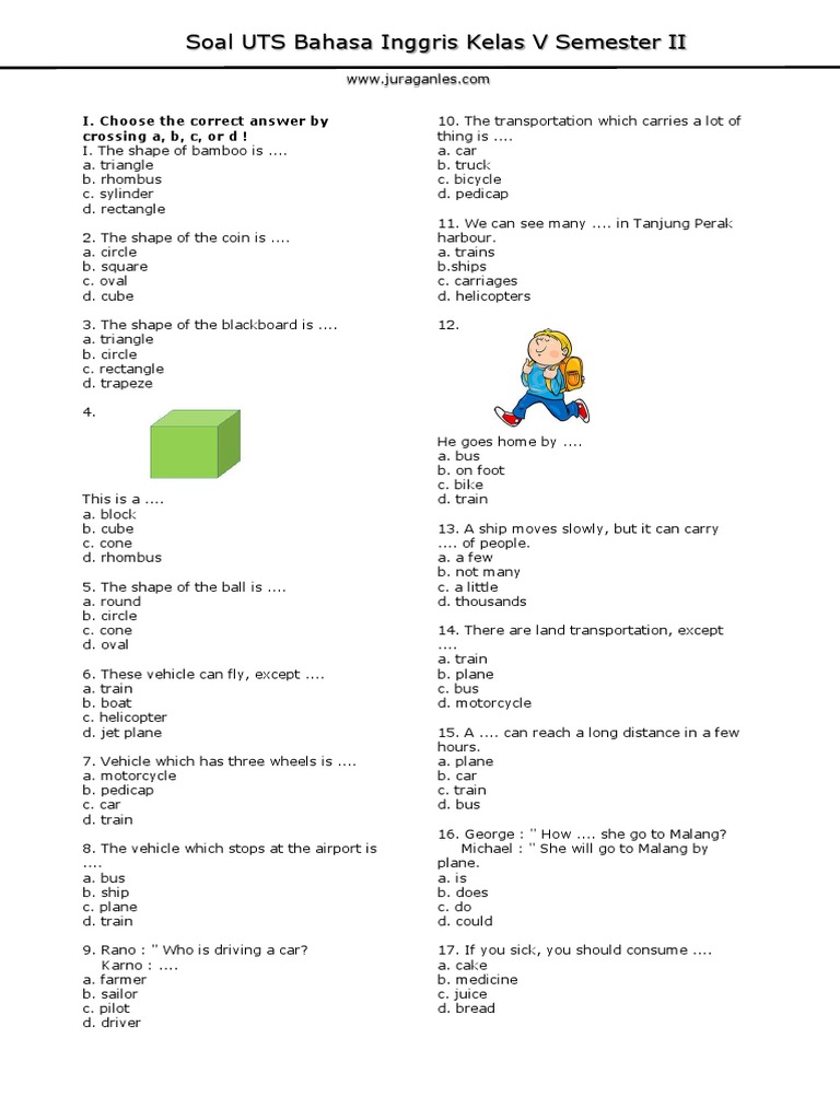 Berikut bospedia memberikan soal uas bahasa inggris kelas 5 sd/mi. Soal ini sebagai bahan pembelajaran dalam menghadapi ulangan akhir semester atau pts tahun ajaran. Kumpulan rumus matematika kelas 5 sd beserta contoh soalnya. Teruslah untuk bersama kami pada. By azzahra rahmahposted on january 14, 2020.